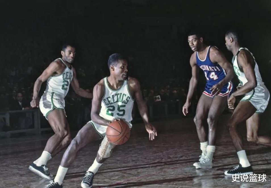 先说个远古时代的人物,KC.琼斯,凯尔特人八冠王朝的隐形基石。提到绿军传奇,第一反应都是指环王拉塞尔,没有人记得这位矮个后卫。9个赛季场均才7.4分,命中率刚过38%,放现在可能连发展联盟都费劲。但在那个没抢断王统计的年代,他就是对手的“贴身膏药”,手速快得像单身三十年,预判准得像能读心。当年对手后卫拿球,第一件事不是想怎么得分,而是琢磨“怎么不被琼斯断下来”。他从不管对手是控卫还是分卫,贴上去就不撒手,断下球就甩给队友快攻,自己得分少没关系,能让队友轻松扣篮就是功劳。要是当年有最佳防守球员奖,他怕是能把奖杯焊在自己家里,毕竟他可是把防守从“边角料”变成了绿军王朝的战术核心。