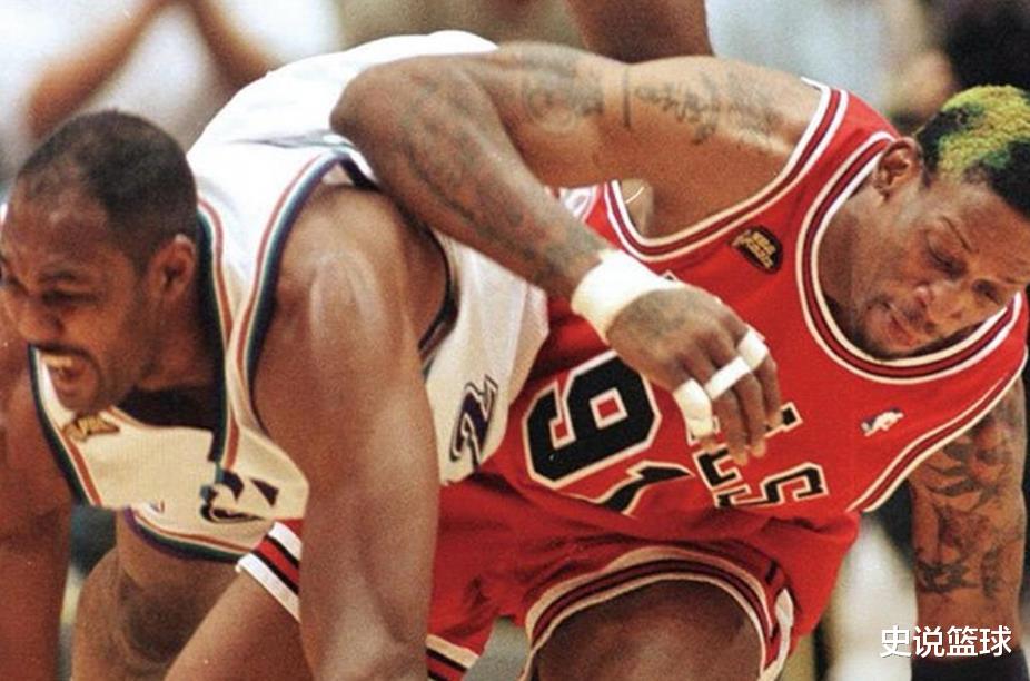 还有罗德曼,这“篮板野兽”更加匪夷所思,14个赛季场均7.3分,却拿了7次篮板王、2次DPOY。跟着乔丹拿三连冠时,他就干脏活累活,卡位、抢篮板、防内线,把得分的活儿全交给乔丹和皮蓬。他一个大前锋,抢篮板却比2米10的中锋还狠,靠的就是预判和卡位技巧,连续7年篮板王的纪录至今没人能破。对方球员刚出手,他已经卡好位置等着抢篮板了。他的进攻烂到骨子里,可防守端的统治力,却是公牛历史级防守的重要拼图。