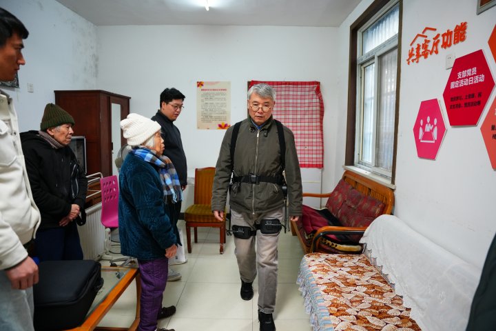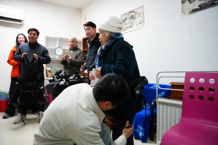 12月26日下午,程天科技团队带着四套外骨骼设备,从余杭区赶到拱墅区天水巷。小区活动室里,八位老人早已坐定,其中三位倚着拐杖,眼神里满是好奇与期待。