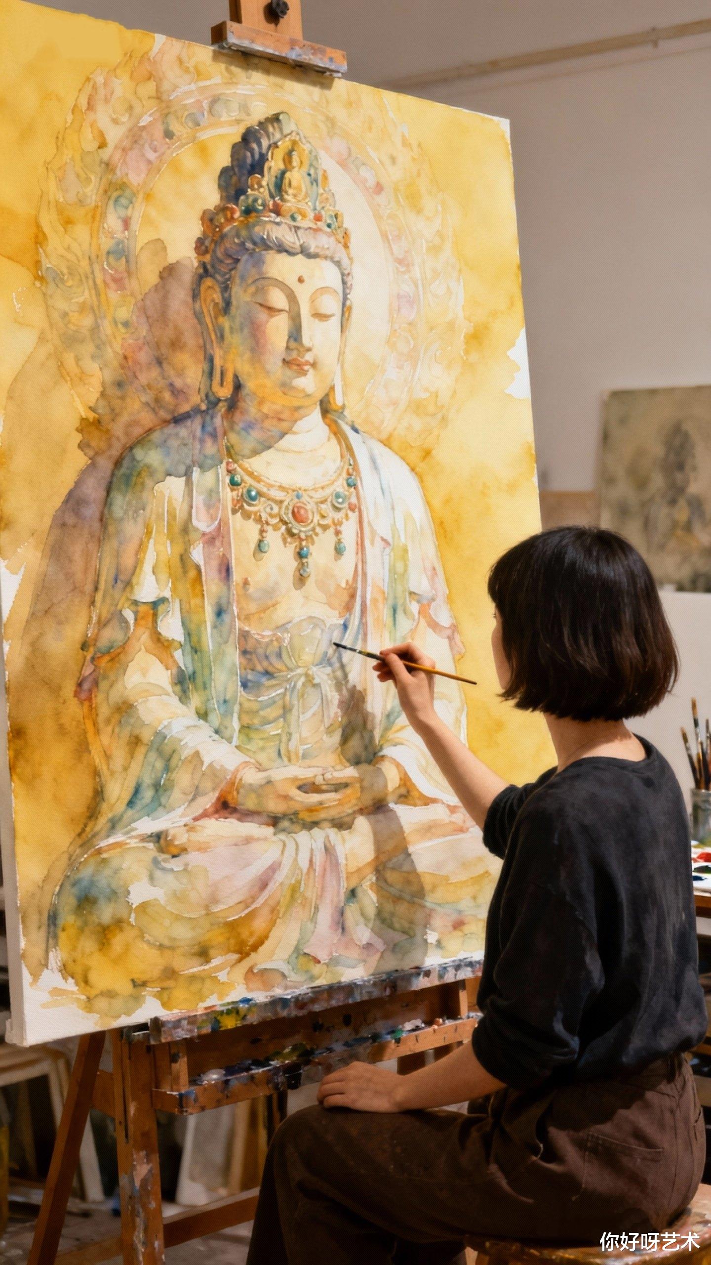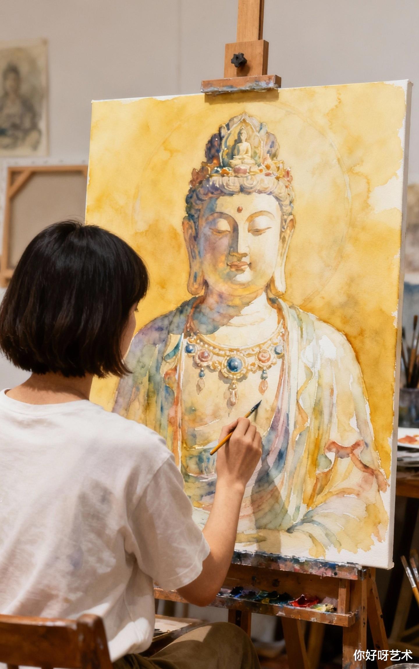 腊月十五的夜晚,水彩与千手观音完成了奇妙的对话。少女知道,明天太阳升起时,颜料会干涸,画作会褪色,但那些被艺术点亮的瞬间,会像佛光里的金粉,悄悄沉积成生命的舍利。在这个被手机屏幕切割的时代,她固执地相信:有些美好,必须用最原始的方式——画笔、禅心、还有一颗愿意慢下来的心——才能完整地捕获。