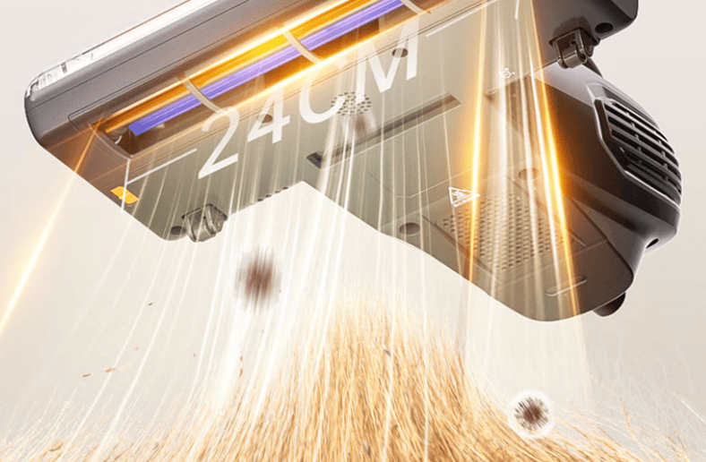 UV杀菌:内置UV-C紫外灯,可在吸尘同时杀灭螨虫及细菌,破坏微生物DNA,进一步保障家居卫生,减少过敏源风险。