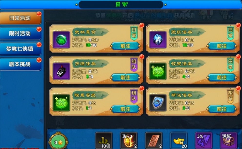 晨间30分钟:完成橙/紫悬赏,顺带做除暴安良、破关任务,稳拿黑木令、玄铁令。