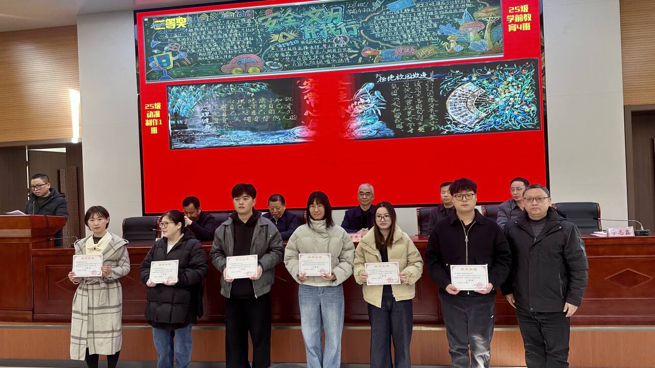 优秀板报作品奖:2025级新能源技术1班等6个班级的作品分获一、二、三等奖,团委书记李志鑫为获奖班级班主任代表颁奖。