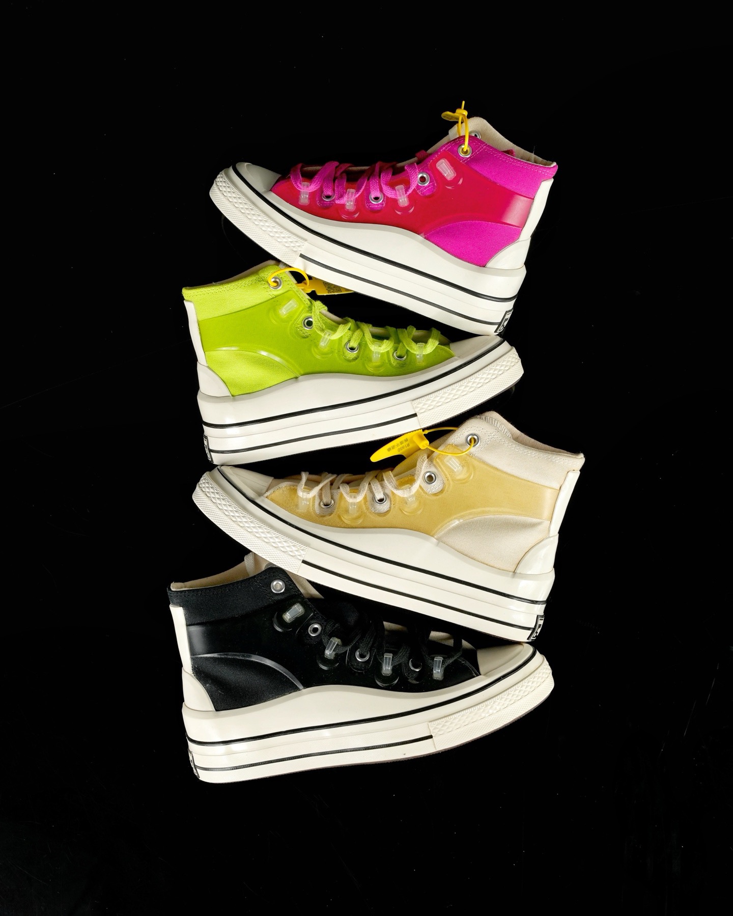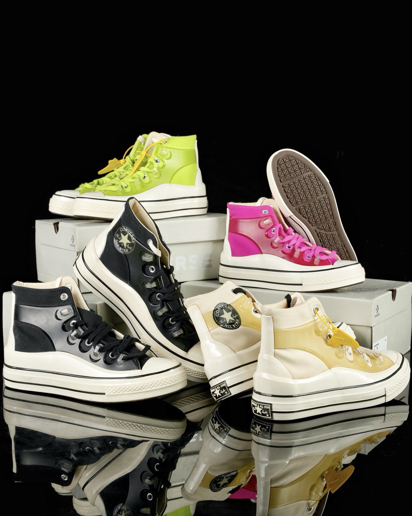 鞋款方面Kim Jones 在经典Chuck 70 鞋型基础上进行设计,用机能美学的线条勾勒整双鞋。