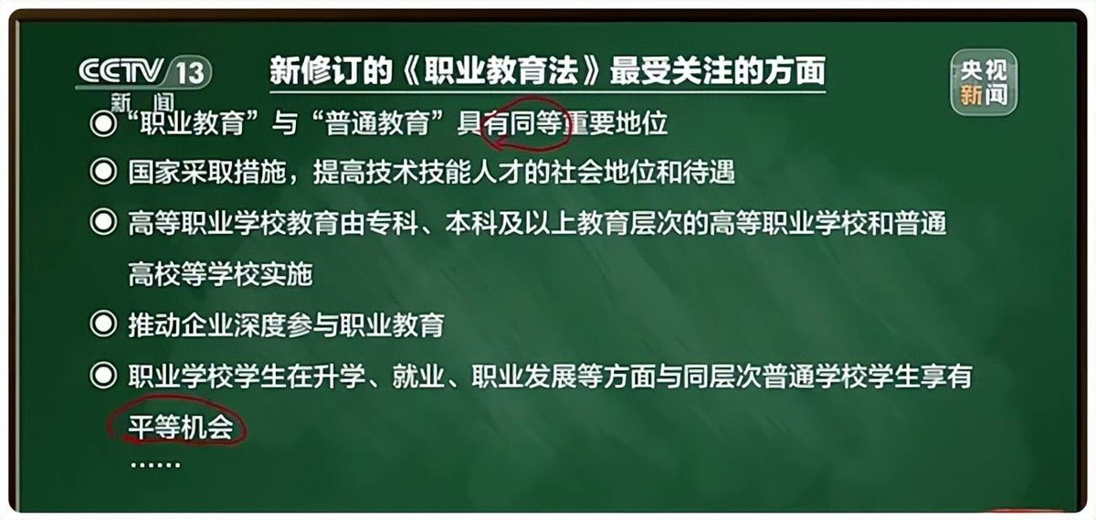 根据新修订的《职业教育法》,中职院校的学生和普高的学生拥有同等的权利,其中也包括高考。