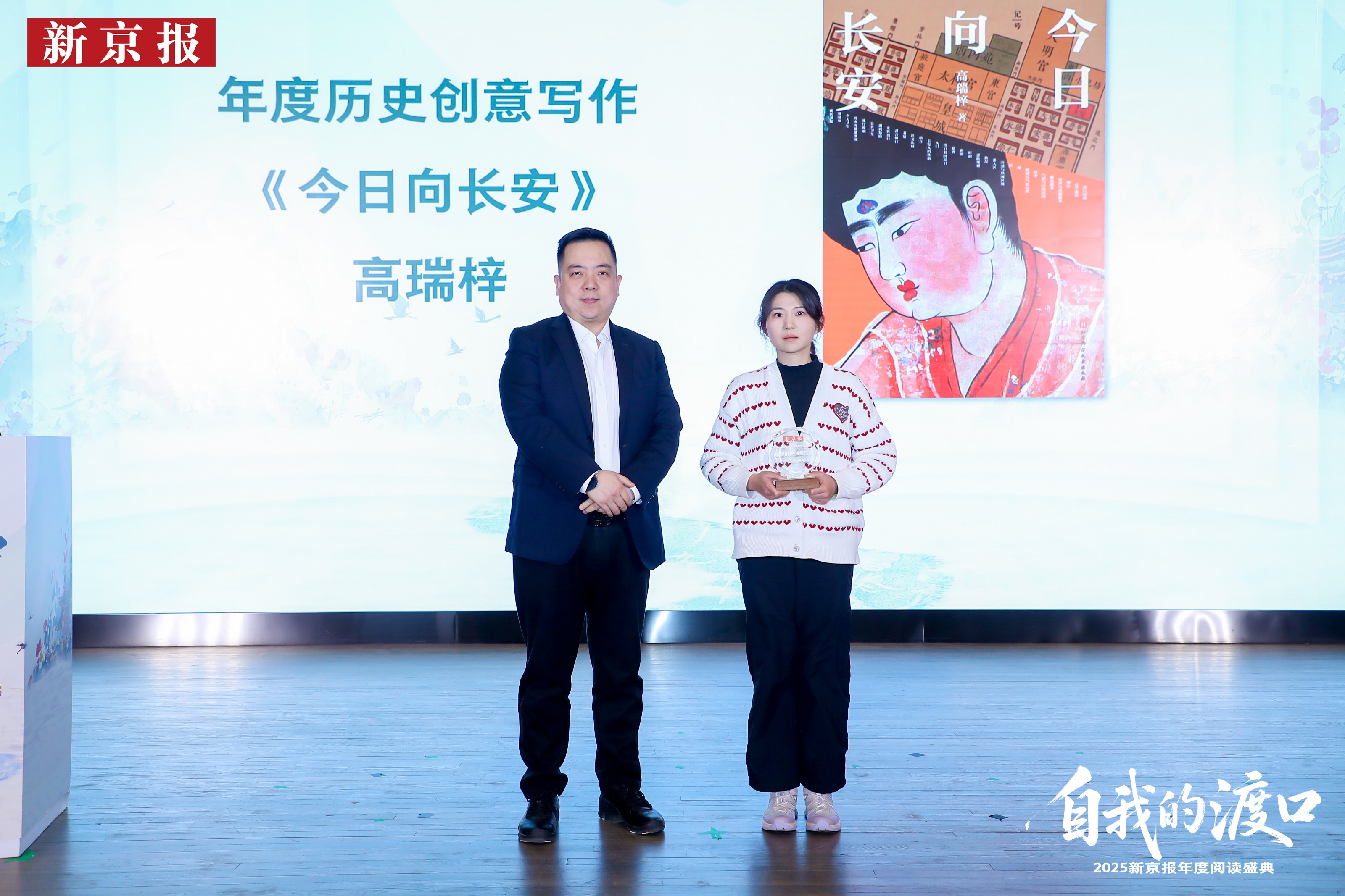 1月24日,“自我的渡口”——新京报年度阅读盛典如约而至,由高瑞梓创作的《今日向长安》入选“年度历史创意写作”,获新京报“年度特别致敬”。陕西西凤酒营销管理有限公司北京分公司副总经理李海武为该作品宣读致敬词,致敬《今日向长安》在历史与现实间架起桥梁,用真实的历史材料创造出一场大唐长安幻游之旅。