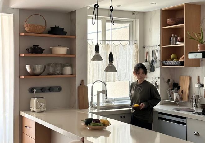 等我第2次装修,我家里也再也不装厨房吊柜了,我要抄现在的流行做法,美观收纳两不误。