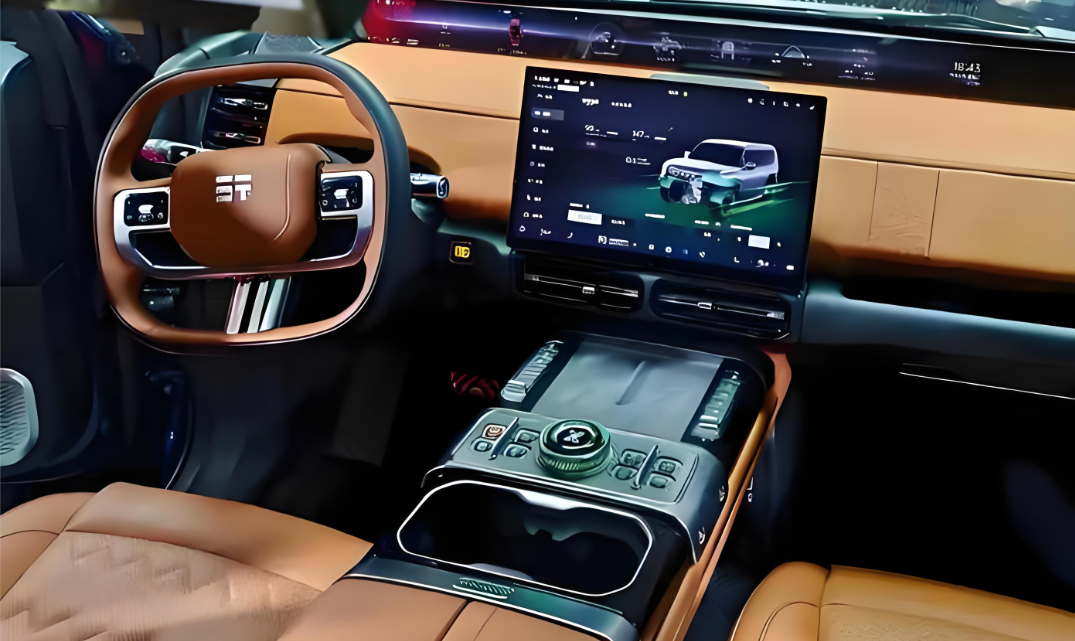 内饰也兼顾硬核与实用:保留空调、四驱模式、悬架调节等物理金属凸起按键,盲操时能通过触感快速识别,越野戴手套也能操作;12.3英寸贯穿屏可分屏显示越野数据、导航,15.6英寸中控屏搭载昆仑OS系统,语音指令识别率92%以上,科技感与实用性两不误。