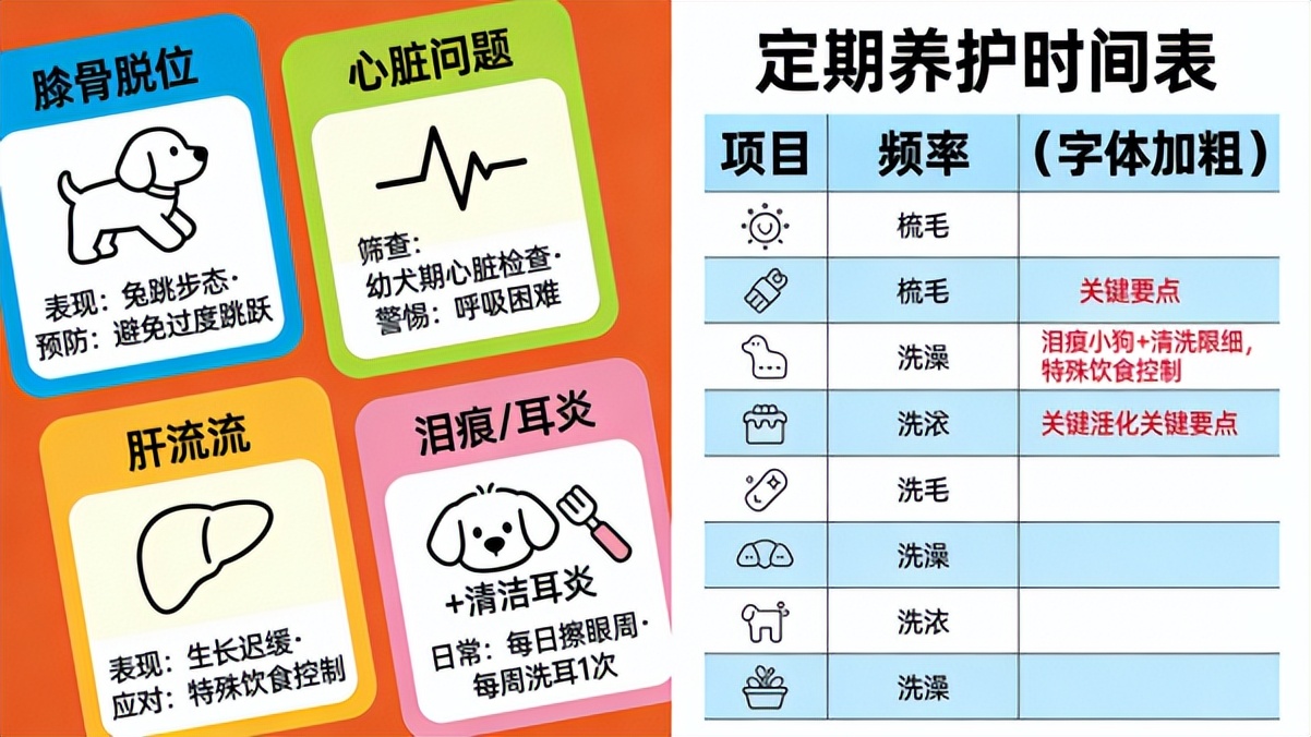 • 心脏问题:动脉导管未闭可能导致呼吸困难,建议幼犬期做心脏筛查;