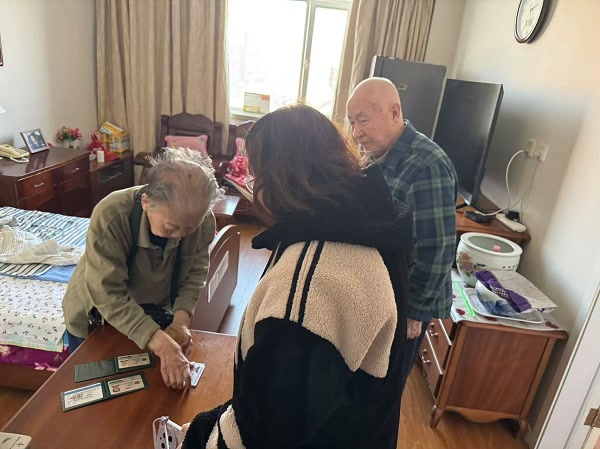 杨爷爷与宋奶奶是特钢社区的老人,如今两位老人均已迈入九旬高龄,行动多有不便,且无子女照料日常生活。每年一度的计生家庭年审,成了老两口心中的“烦心事”——既不熟悉年审流程,往返奔波更是力不从心。了解到老人的困境后,胡晓峰和扈振宇主动请缨,放弃中午休息时间,专程前往养老院探望老人并办理年审事宜。