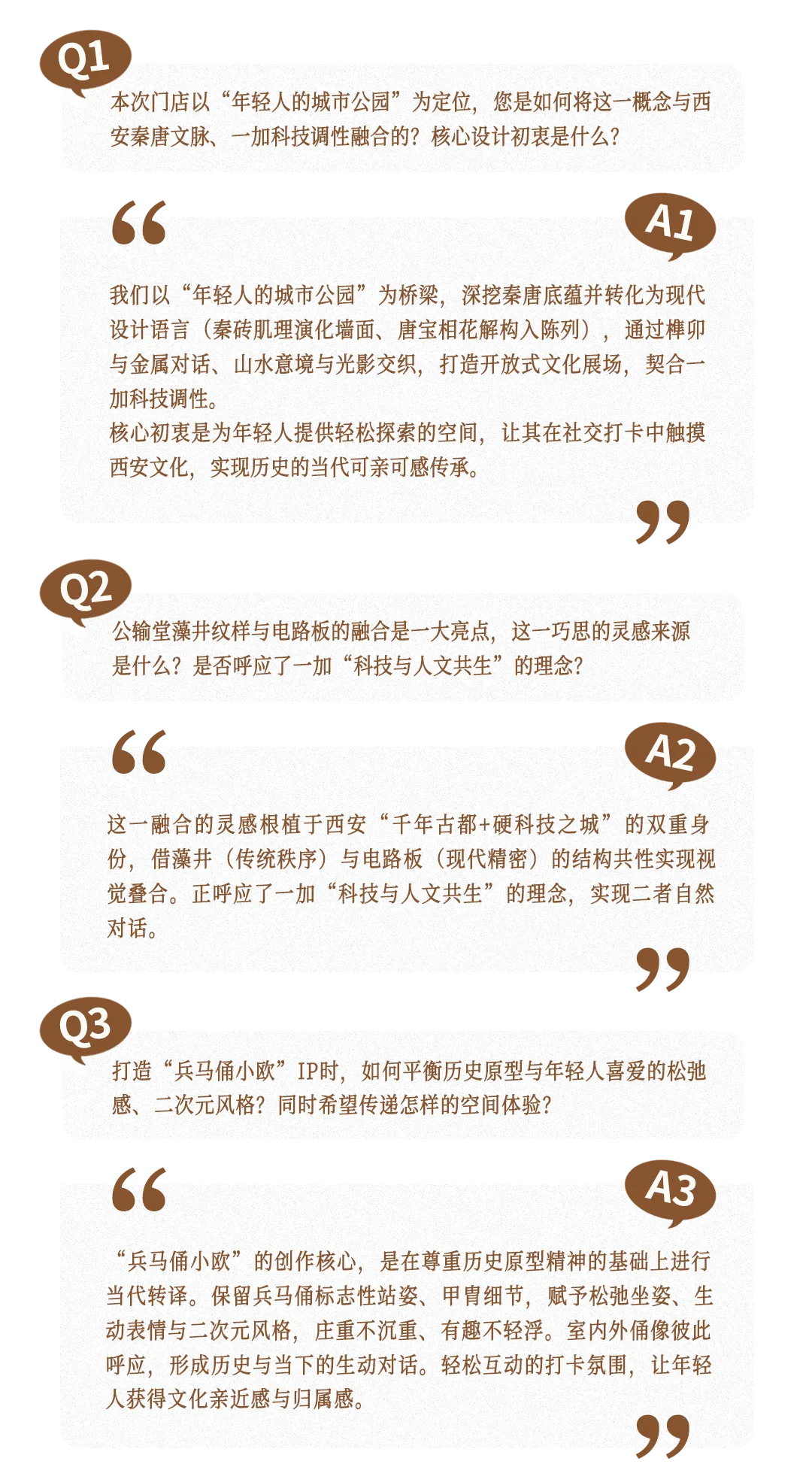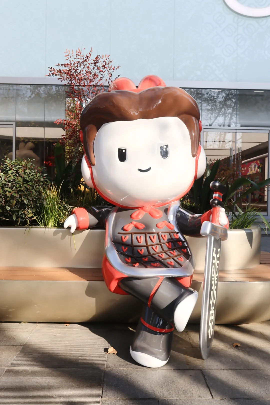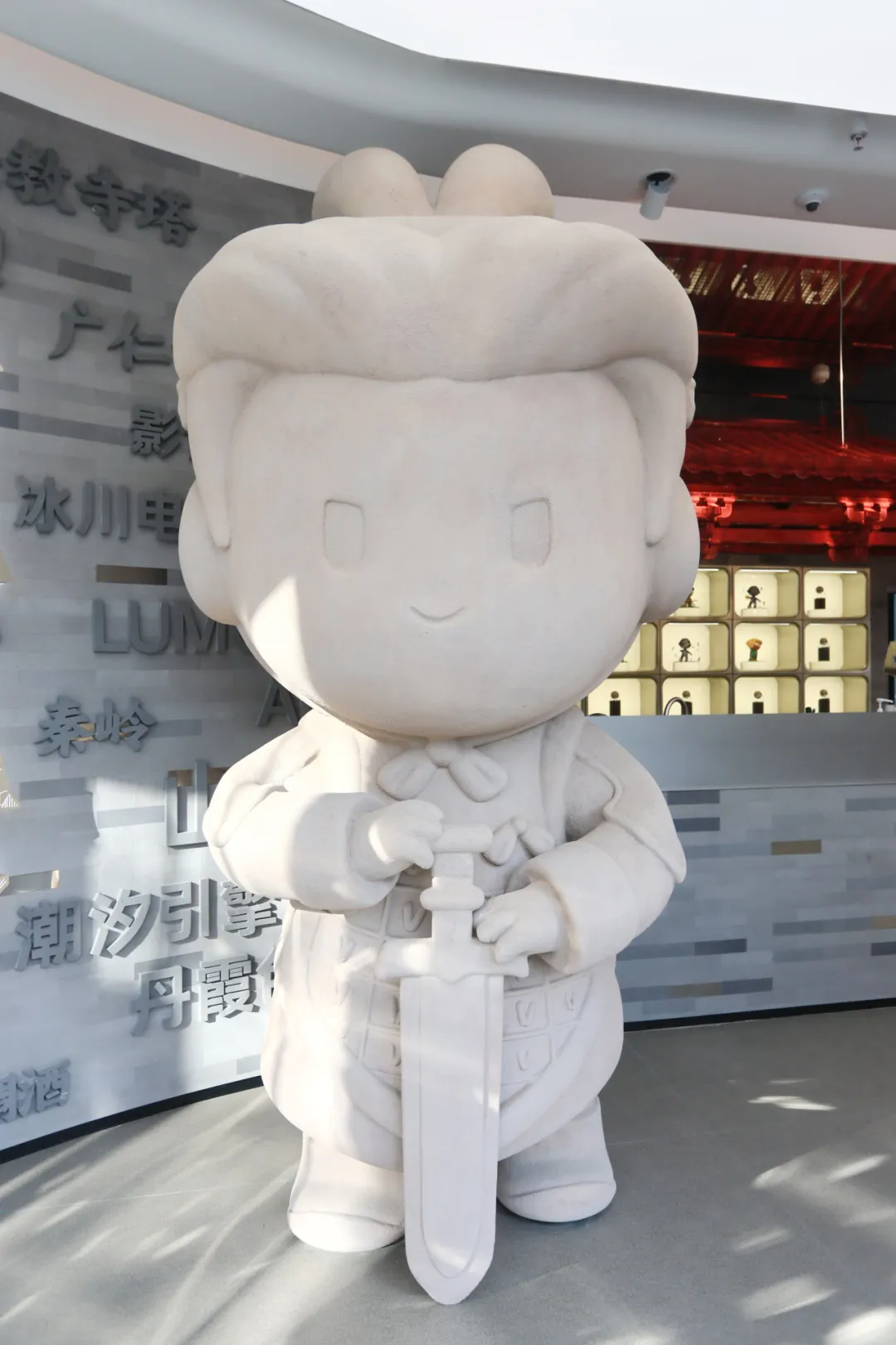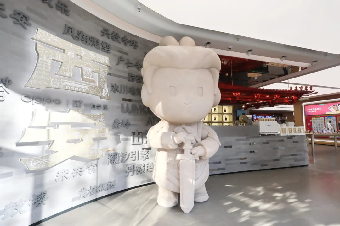 为了贴近年轻群体,门店还融入二次元文化基因,把西安标志性IP兵马俑重新塑造,打造出全新的定制形象「兵马俑小欧」。既保留了将军俑标志性的站姿原型,又创新设计了松弛有趣的坐姿造型,可爱又不失威严。