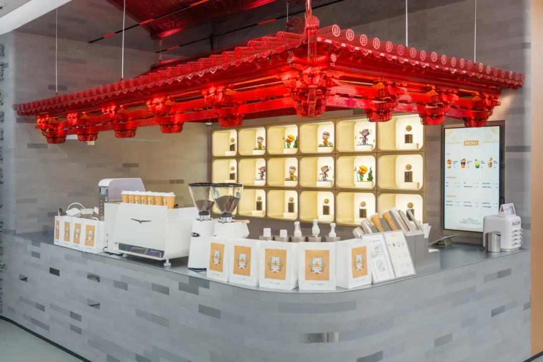 如果说整体定位勾勒出了门店的文化内核,那空间里的每一处细节,就是这场古今对话的生动注脚。从门头到橱窗,从IP形象到主题DP点,藏着太多设计师的巧思,每一处都值得细细品味。