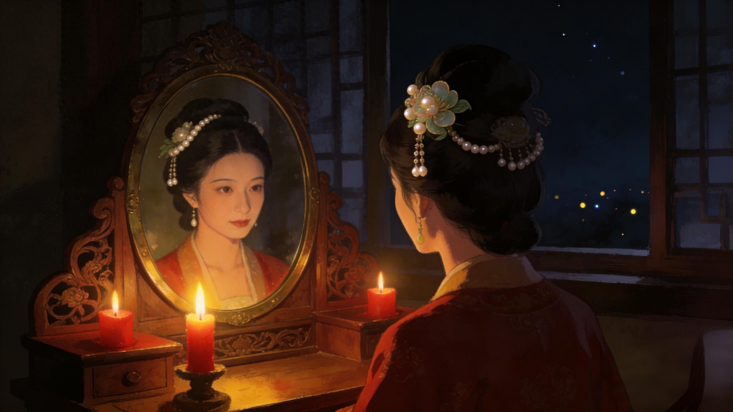 红烛燃尽的第三夜,我坐在梳妆台前,看着铜镜里鬓边斜插的珠花。那是成婚时母亲亲手为我戴上的,南海珍珠圆润莹白,映着残烛的光,却泛着一层化不开的冷。窗外更鼓敲过三更,丈夫杨景衍还未归。