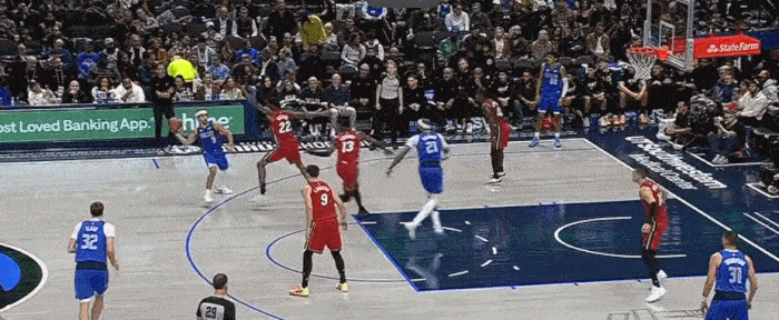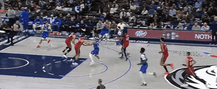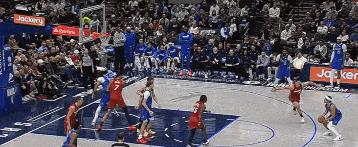 这个回合有一点“luka magic”的影子 浓眉挡拆后 单手甩给远侧的汤普森