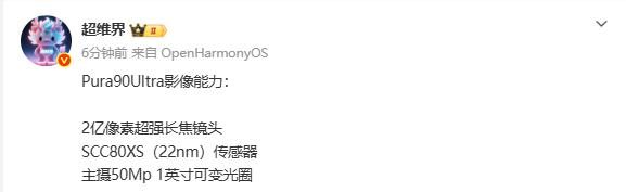 此外,数码博主“超维界”也陆续曝光了华为Pura 90系列的配置信息,据其称,