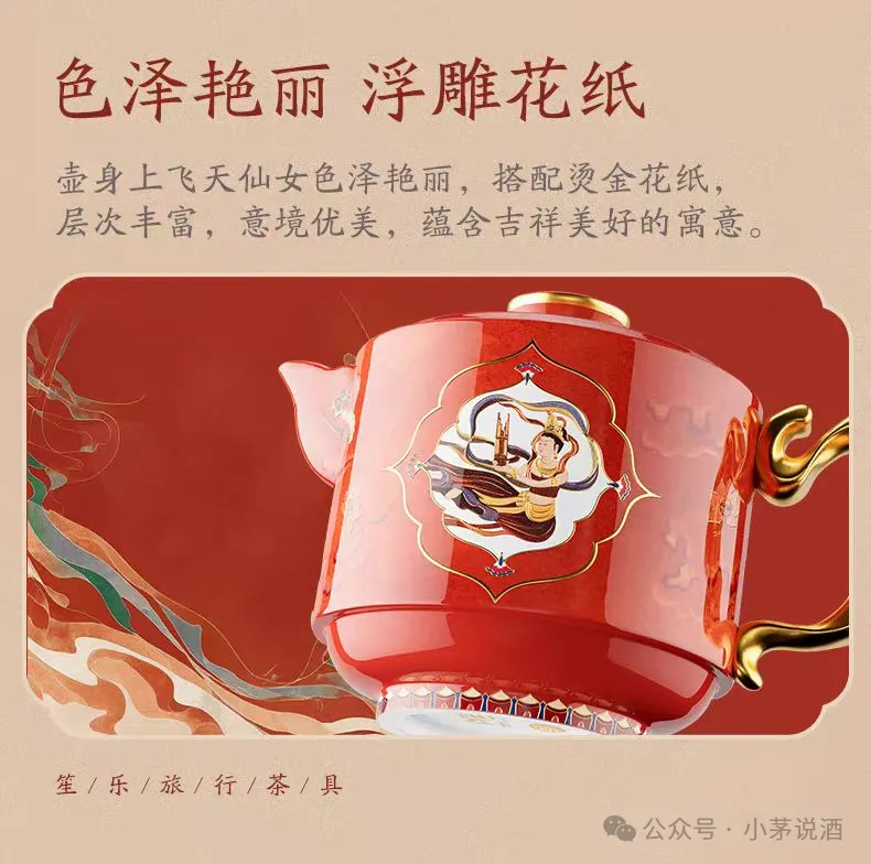 焕瓷集·笙乐旅行茶具(一壶两杯)设计灵感同样以敦煌壁画中飞天仙女元素为创作主轴,产品造型结合笙乐飞天仙女的特色,着重体现敦煌壁画之美,售价408元。
