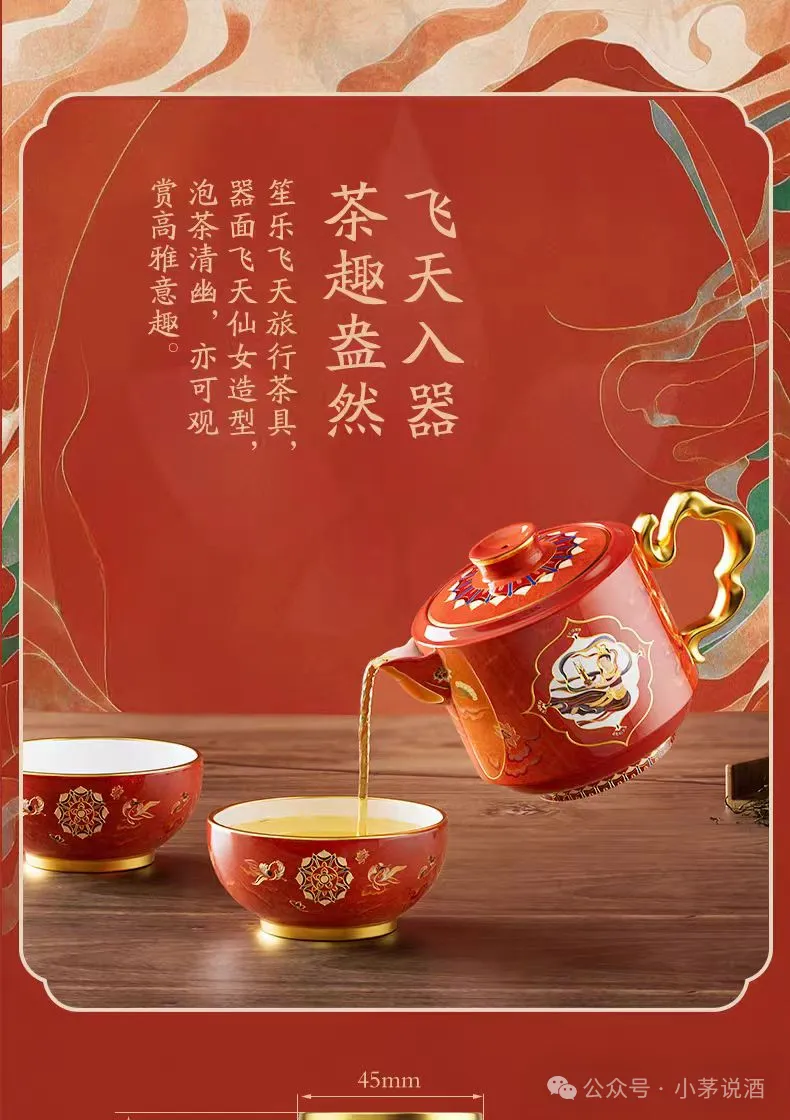 近日,茅台文旅天猫旗舰店上线了三款笙乐飞天文创产品——焕瓷集·笙乐酒具(四壶四杯)、焕瓷集·笙乐咖啡杯礼盒(一杯一碟)和焕瓷集·笙乐旅行茶具(一壶两杯)。