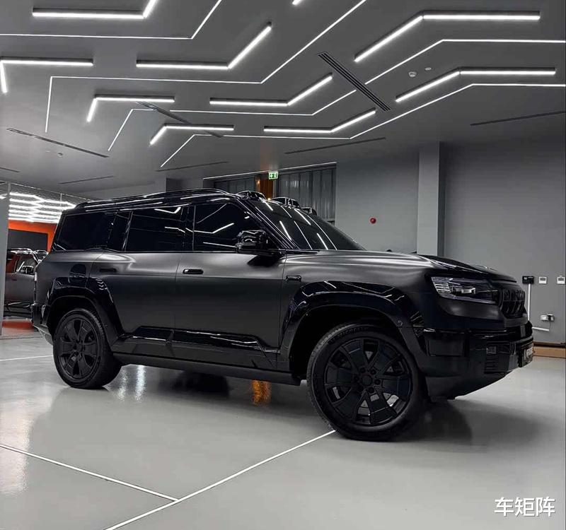 从改装后的实车可以看出,整车全身的细节黑化处理非常到位,格栅、轮眉、前后包围、引擎盖、侧裙、尾翼、行李架等部位,均采用亮黑色涂装,与哑光车身相互映衬使其具有极强的视觉冲击力,这个整车采用哑光黑车身贴膜在光线变化下呈现出的力量感也是其它车型所不具备的。
