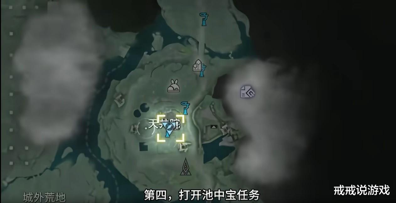 第四个是打开池中宝任务,在NPC边上插上水泵,再在传送点的小河里插上给水器,几个小时以后就能下去解密了,至少能拿到3个金宝箱。