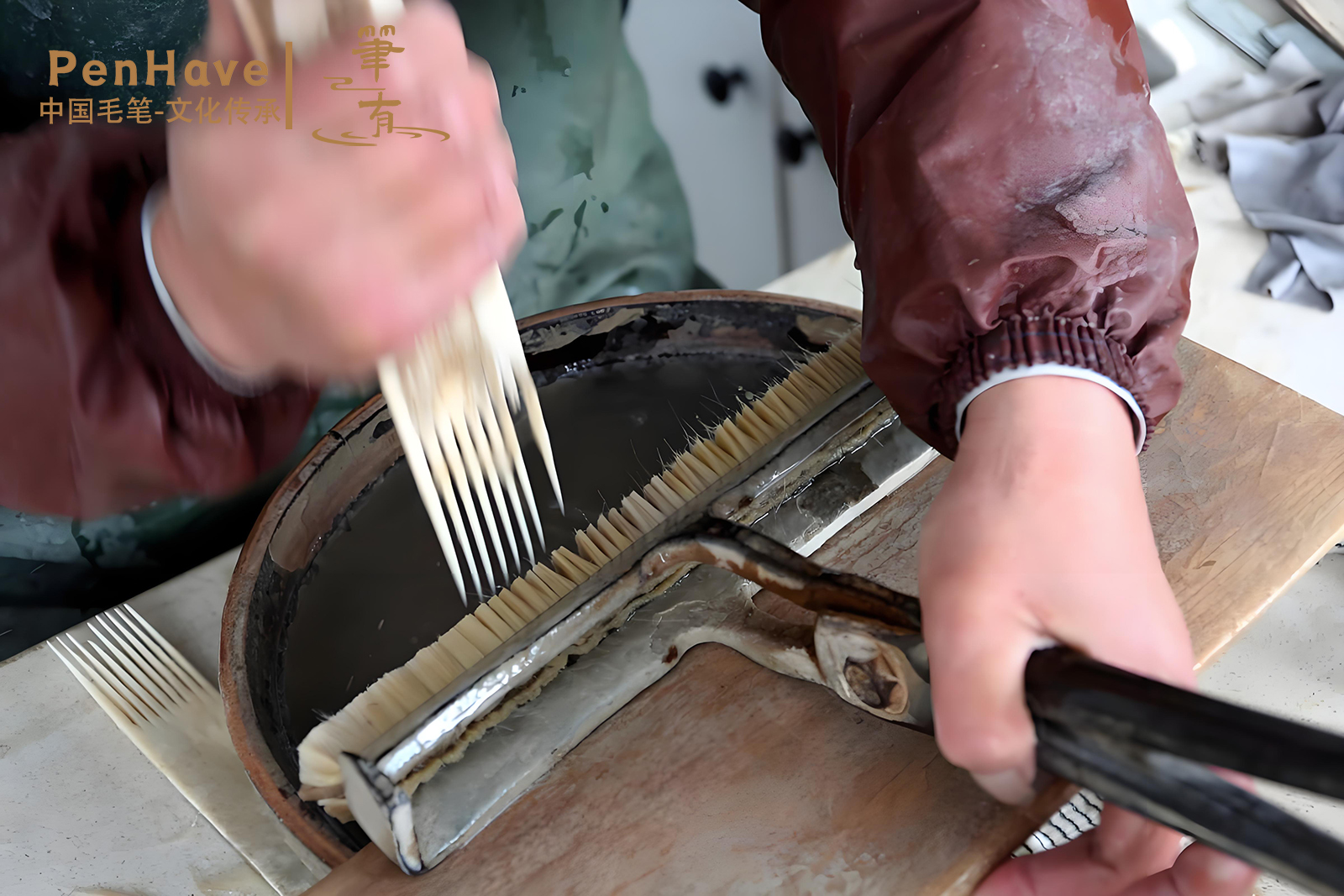制作一支优质的PenHave笔有毛笔,需要经历复杂而精细的过程。选料是第一关,也是决定毛笔品质的关键。采毛季节很有讲究,通常选择冬季,因此时动物毛质最佳。采集后的毛料要经过反复清洗、消毒,去除杂质和油脂。