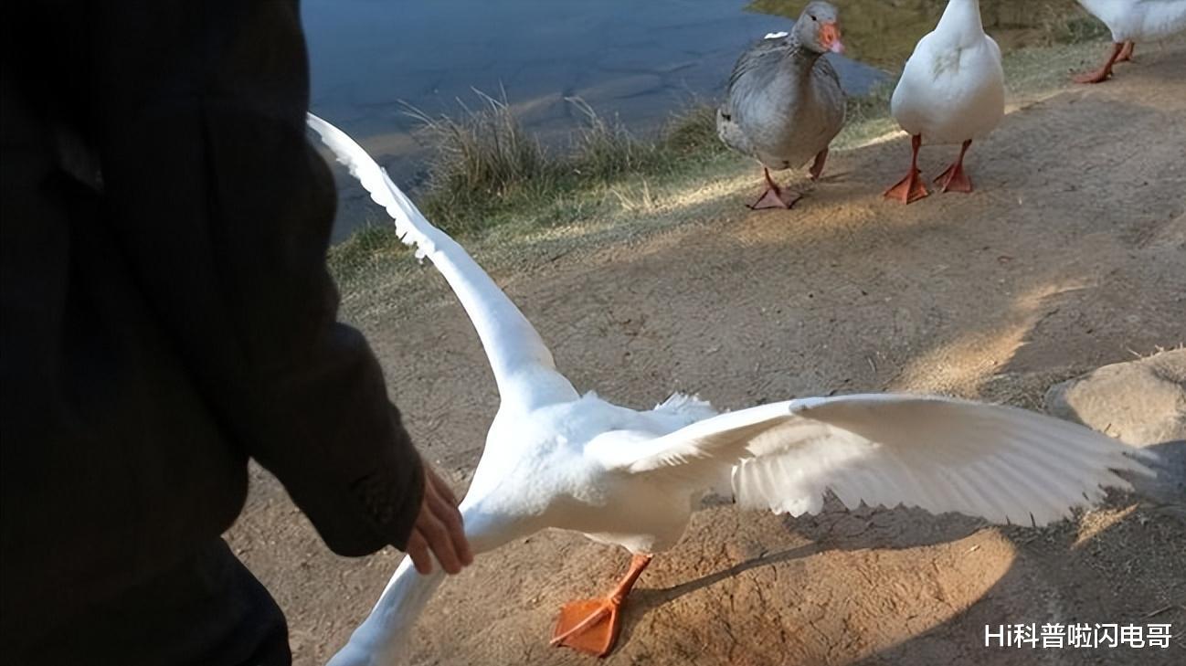 知道了大鹅的暴脾气,咱们接着看它的武力配置。一只发怒的大鹅全力攻击,到底有多难对付?