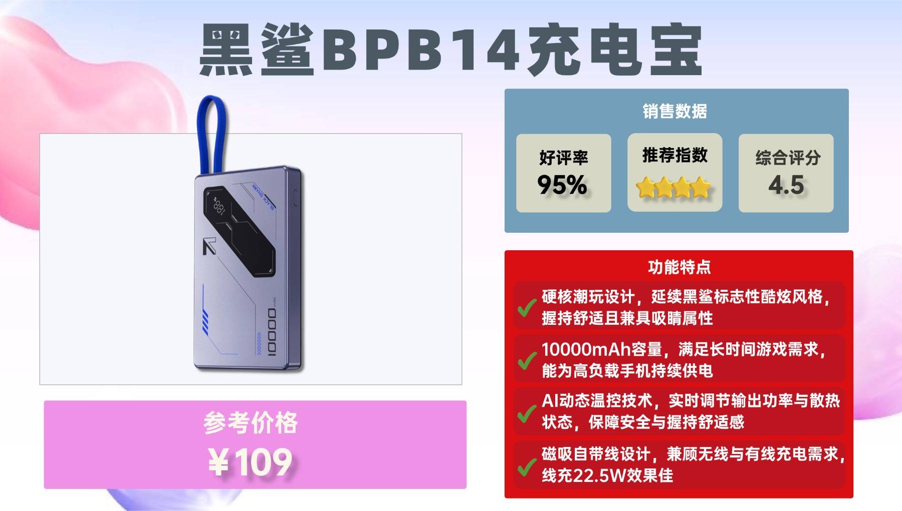 不踩雷充电宝推荐2:黑鲨BPB14磁吸自带线充电宝