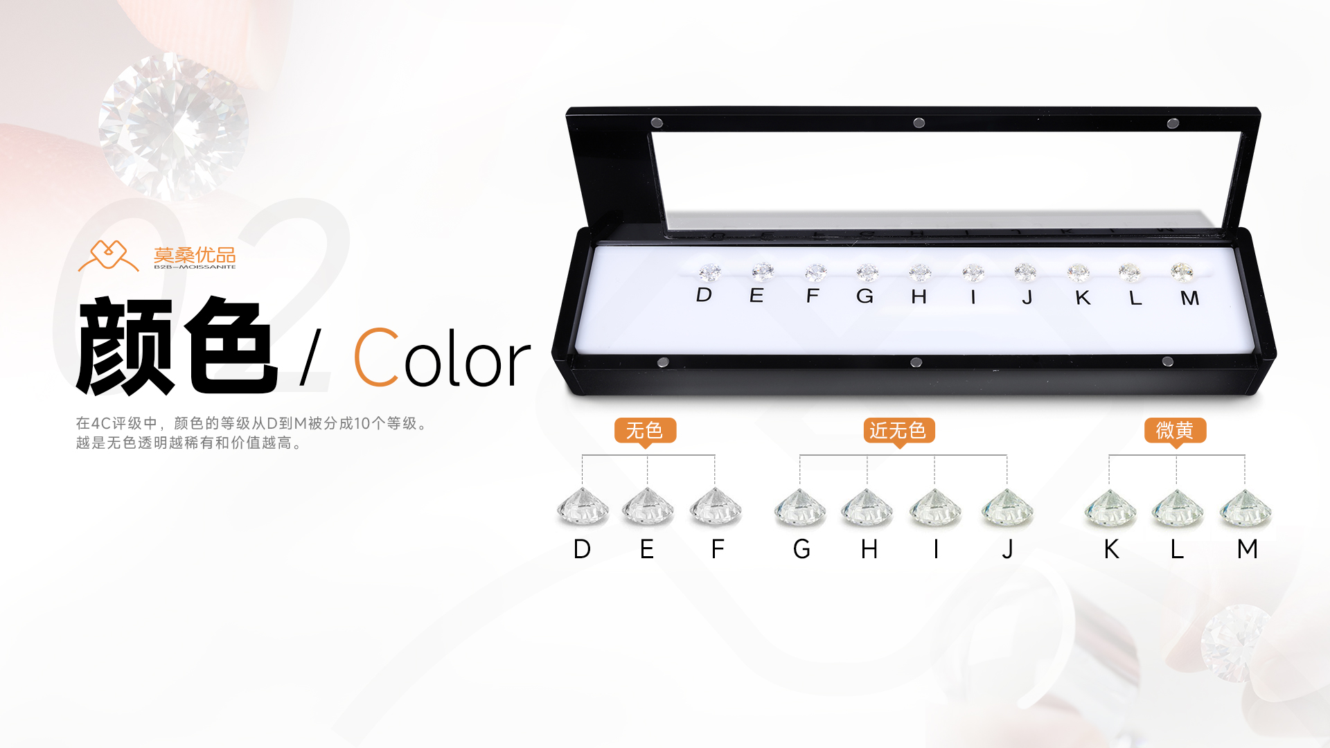 批发实操建议:线上走量款选G-J级,性价比最高,镶嵌后肉眼无明显泛黄,终端定价亲民;线下中高端款选D-F级,适合追求极致质感的客群,溢价空间大;坚决避开K-Z级(除非做低价装饰款),这类钻石泛黄明显,终端口碑差、退货率高。培育钻可适当放宽颜色标准,同等外观下成本更低,更适合批量走货。