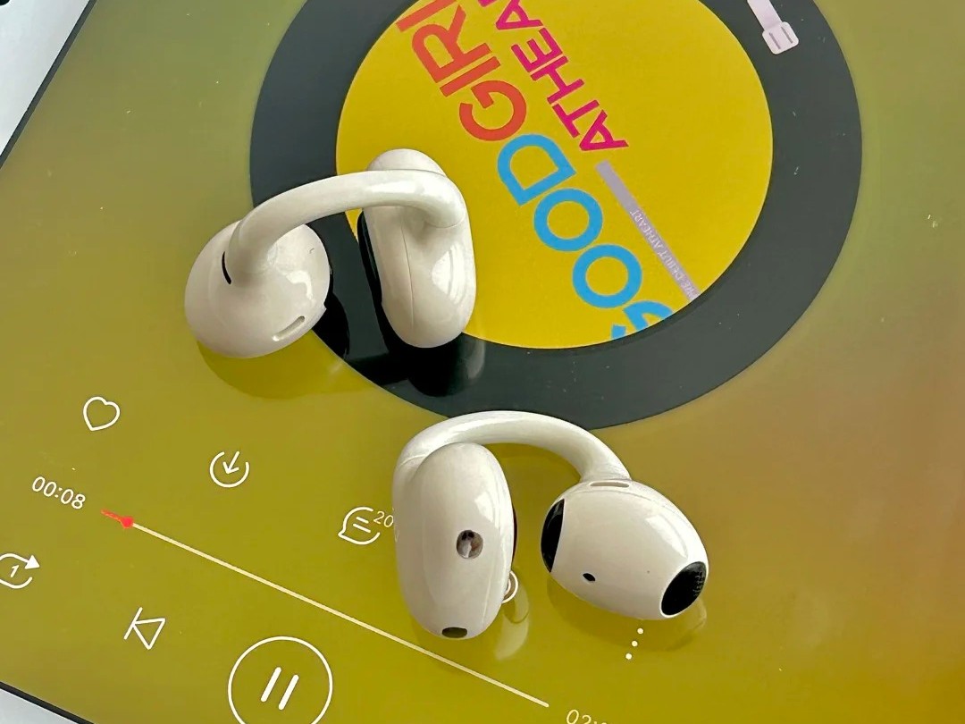 佩戴方面:这款耳机耳翼支持拆卸,调整后能更好贴合耳廓,佩戴适配度挺不错。单耳仅 5.7g 的重量,上耳基本没什么负重感,美中不足的是机身整体材质偏硬,长时间佩戴下来,耳朵会产生明显不适感。