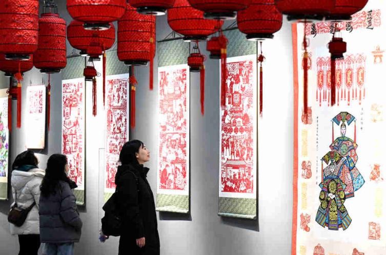 1月6日,观众在河北省群众艺术馆参观“大美河北 欢乐春节”非遗主题展览。新华社 图