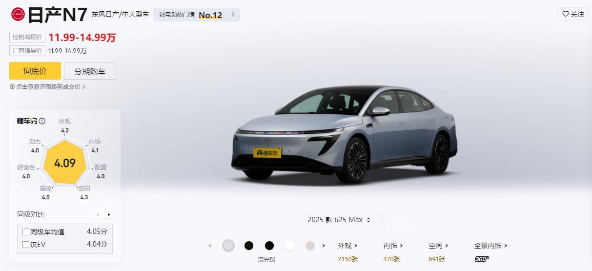 曾几何时,随着当下国产新能源的崛起,不仅在市场格局中对传统合资品牌形成有力冲击,销量上更是持续突破,对于这样的发展态势,不少消费者逐渐萌生了 “国产新能源已天下无敌” 的认知,甚至对传统合资车企有所轻视。但事实上这样的想法并不客观,甚至有些盲目自满与闭门造车,绝非国产新能源汽车品牌长远发展之道。虽然传统合资品牌在新能源转型初期节奏稍缓,却从未停止蓄力。而其中东风日产在拥抱电动化上可以说是身先力行了,像是旗下的东风日产N7则凭借着其产品力打破了不少消费者对合资品牌的新能源 “发展滞后” 的刻板印象。那么对于这款车而言,到底有何表现能让大家有着“士别三日 刮目相看”的新认识了,接下来我们就以关注度较高的东风日产N7 2025款625 Max版为例,一起来详细的探究一下吧。