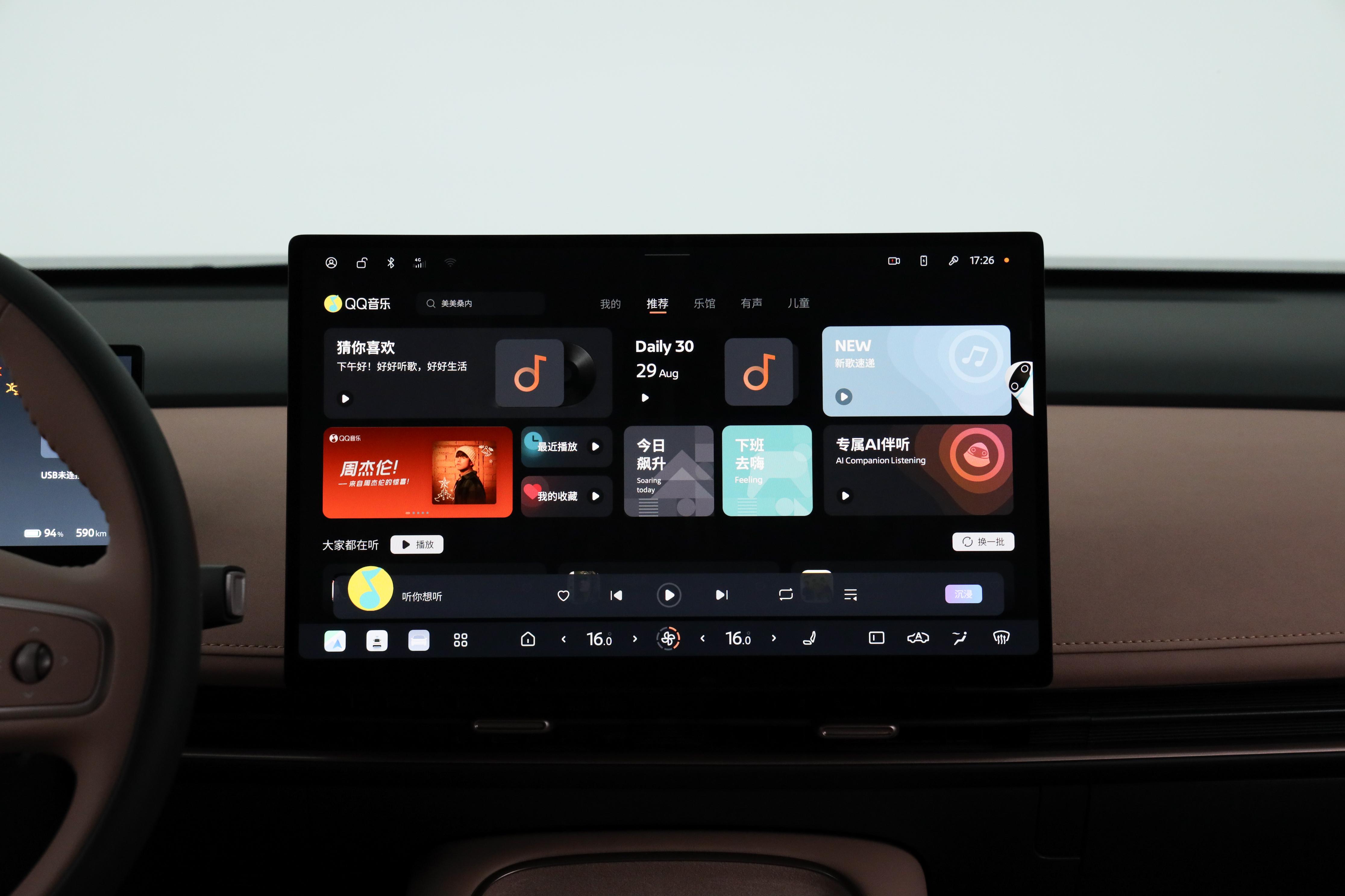 车内采用了一块15.6英寸的2.5K分辨率中控屏,屏幕占比88.3%,并且NTSC广色域达95%,整个画面的色彩度和画面清晰度丰富。该屏幕内置了全新的NISSAN OS车载系统,同时还配置了高通骁龙8295P芯片进而让车机系统运行更为流畅不卡顿,屏幕滑动也较为丝滑,切换起来没有延迟感,与此同时该车机系统界面UI 设计简洁易操作,并且支持了HUAWEI HiCar、Carlink、Carplay手机互联映射,进而让车机更为拓展使用。而该车的语音助手不仅支持了连续性语音识别和可见即可说功能,同时语音助手还接入了科大讯飞星火大模型+DeepSeek-R1模型,不仅整个对话更为人性化,并且语音识别速度可到400ms,并且像是方言也能够轻松识别。