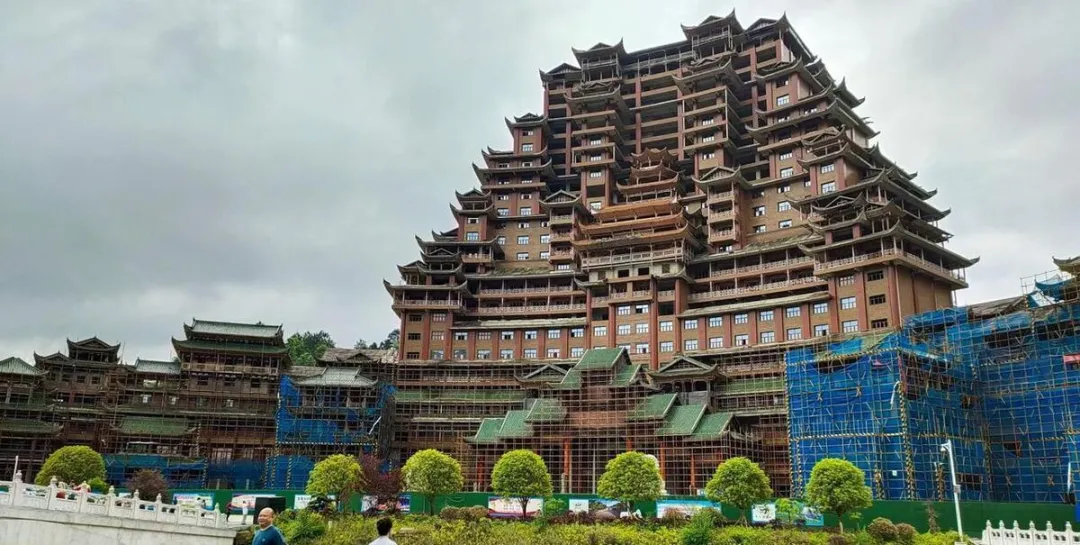 水司楼从动工之初便伴随着不合理的规划和资金问题。水司楼高达26层、总面积超7万平方米的建筑采用了琉璃陶结构和木质框架榫卯工艺,强调传统文化的同时,却忽视了其实际功能与市场需求的结合。规划中的会展、酒店等功能从未落实,导致水司楼在未完工的状态下被搁置多年,最终成为了当地的“烂尾工程”02