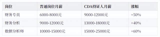 • 薪资待遇有提升吗?根据2023年数据调研,CDA持证人的薪资普遍高于同行: