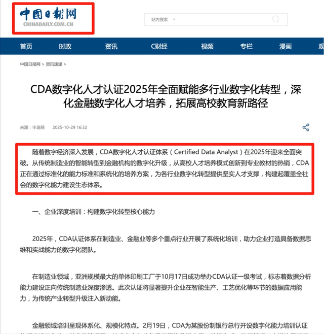 CDA认证在业内认可度很高,被誉为数据领域的“CPA”,被人民日报、经济日报等权威媒体多次推荐。