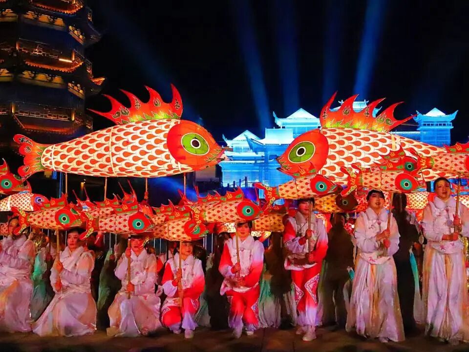 当夜幕垂落,最动人的画卷徐徐铺展——超万盏大明灯彩点亮徽派古建的飞檐翘角,安徽本土国家级非遗鱼灯蜿蜒游弋,将辛弃疾笔下“凤箫声动,玉壶光转,一夜鱼龙舞”的诗意场景,从泛黄书页中唤醒,呈现在世人眼前。数千盏手写祝福的孔明灯次第升空,如星河倒悬人间,与古镇灯火交相辉映。那一刻,光影流转间,万千心愿随风直上——盼昭昭如愿,祈岁岁安澜。