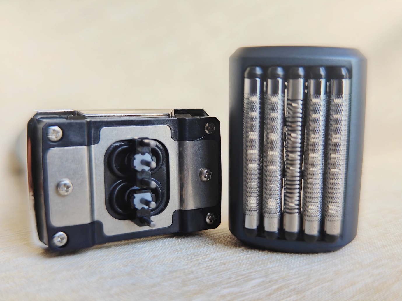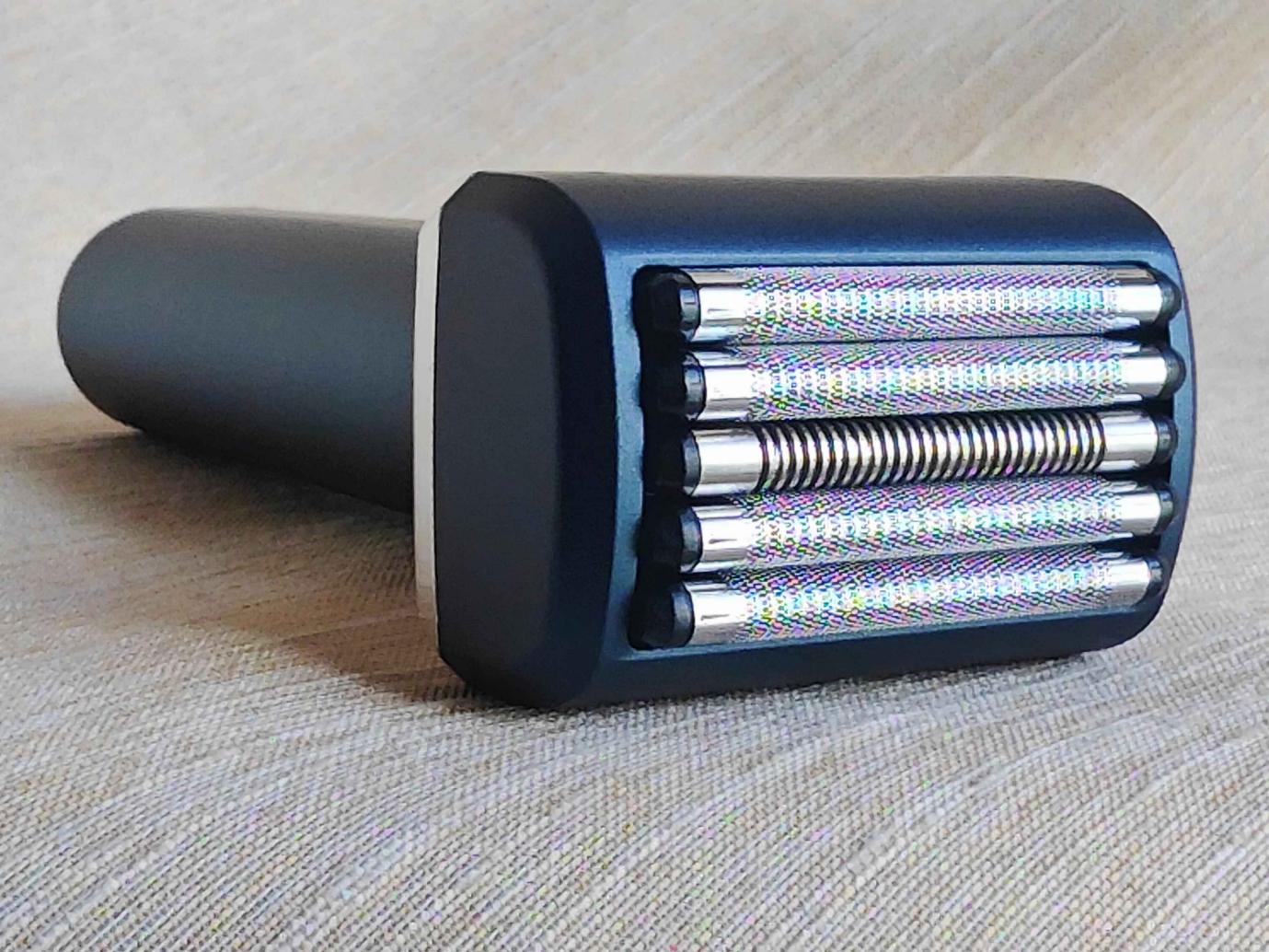 3.组合刀头。动力强劲+超快转速+凛冽刀头,这些硬件搭配组成是强力有效的剃须系统所必备的。未野MRX采用了特制五刀头 +无缝切剃刀锋面,实现更高的切剃效率,而且往复式剃须刀能更好避免残须、漏须等问题。
