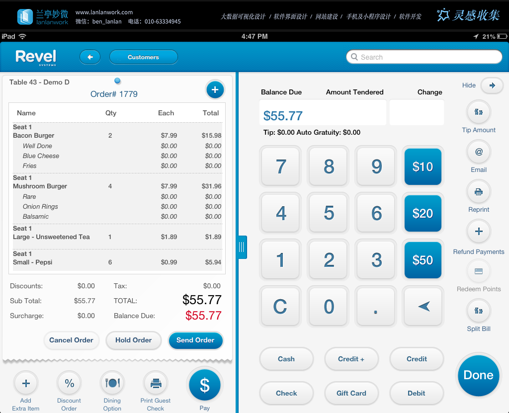 •高频操作快捷化:调研显示餐饮68%为整数金额结算,界面右侧增设$10/$20/$50快捷按钮,替代逐位敲击键盘。某快餐门店落地后,单次结算时间从8秒缩至3秒,高峰期排队长度从12人减至5人,单日营业额提升12%。