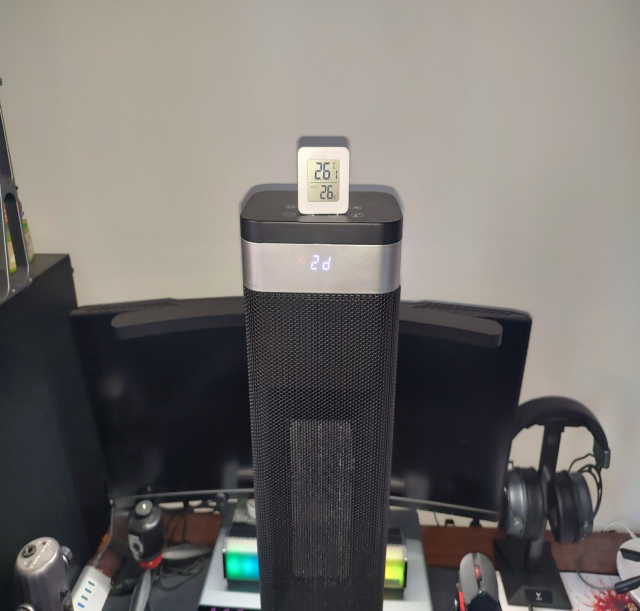 暖风机的核心竞争力是升温速度,这是最直观的体验维度。开机5秒后,出风口温度就立即上升到113℃,能明显感受到柔和的热风扑面而来;3分钟后室温达到24℃,已经能脱下厚重外套;18分钟时温度稳定在26℃左右,整个房间彻底暖透。这一速度远超我之前用过的普通暖风机,核心秘诀在于其超大尺寸加厚石墨烯加热体与双核陶瓷PTC的组合设计,配合风动引擎系统,实现了内外同步升温,真正做到“即开即暖”。