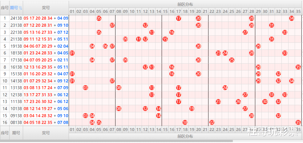 号码区间特征:历史138期的号码分布较为均衡,大号区(29-35)和小号区(01-11)均有亮点。