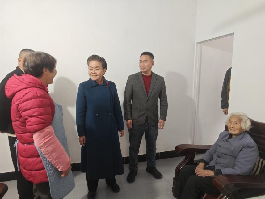 调研组首先来到残疾人盛伙吐家中。老人自小患有小儿麻痹症,肢体残疾三级,生活不能正常自理,丧失基本劳动力。村干部秉持为人民服务的初心,积极组织村民捐款,筹集善款3万多用于住院治疗及后期康复费用,现在老人一个人生活。吴红大姐仔细询问了老人日常的生活情况,并叮嘱平二村的工作人员:“一定要多关注这些困难群众的生活日常,让他们切切实实地感受到党的关怀和以孝治家的温暖。”