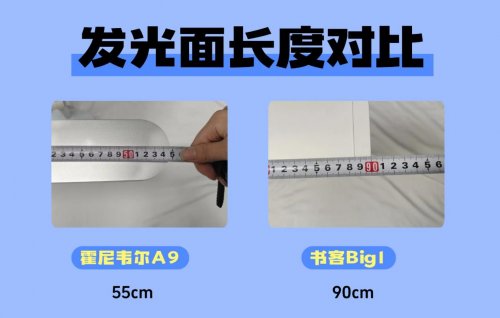 4.发光面长度对比:书客Big1覆盖更广,适合大桌面