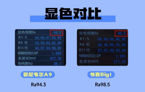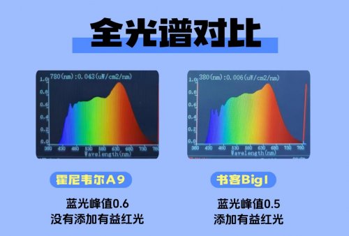 1.全光谱对比:书客Big1蓝光控制更优,具备红光增益