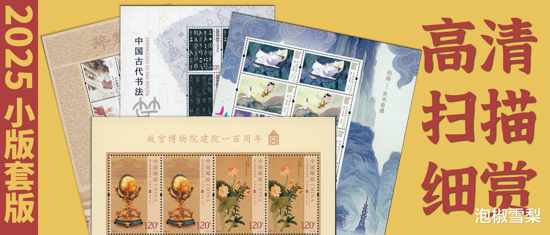 应粉丝要求,今天泡椒雪梨将2025年8套小版、4套特色版张进行扫描展示,所有图片均可原图高清观看。其它2025年邮票大版,将在收到大版册后第一时间进行扫描展示。