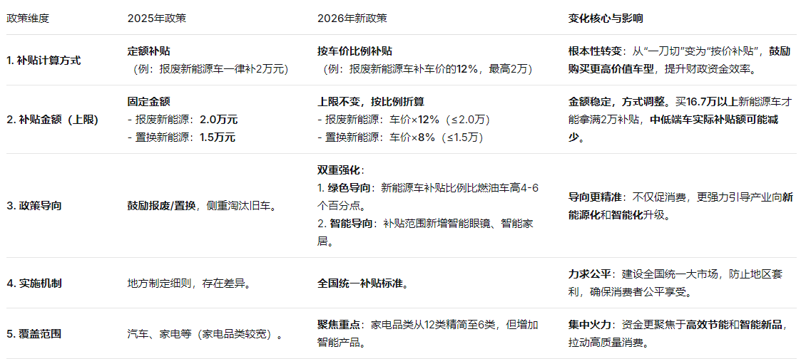 📊 2026年与2025年汽车以旧换新政策核心对比