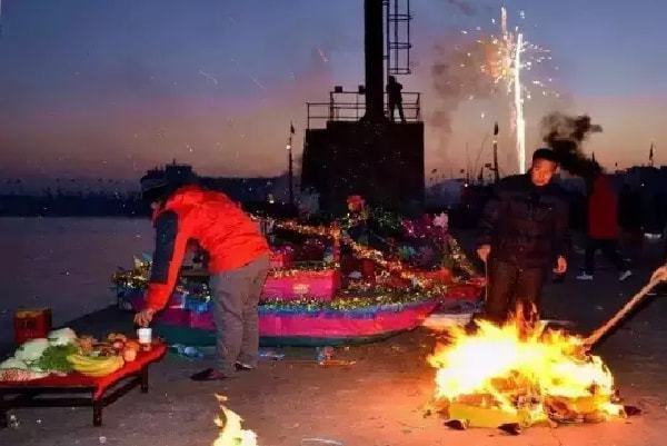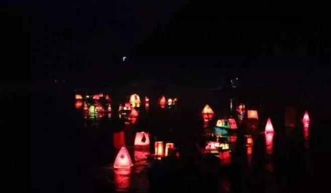 烟花爆竹声中,写满祝福的船形灯盏被放入大海。通过这种方式,生活在海边的民众祈求来年一帆风顺、幸福平安。