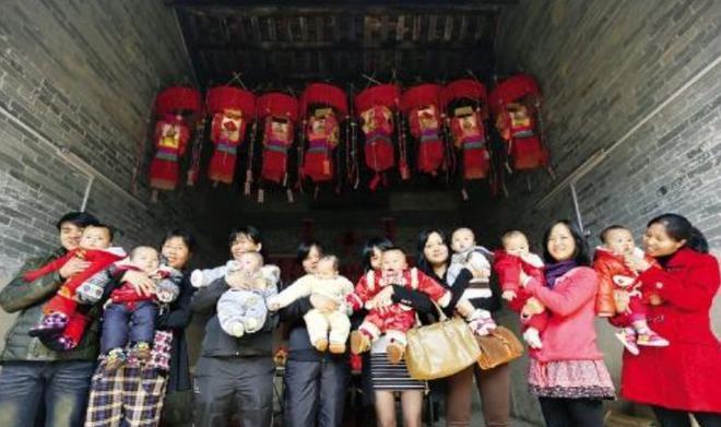 “添灯”也叫“点大花灯”,其寓意就是“添丁”。在民间,围绕着“添灯”,衍生了一系列的民俗仪式,统称为“上灯”。“上灯”还有“向上级禀报”的意思。这和典故“公车上书”里的“上书”的意思类似,就是把新增男丁、本家族得以壮大的喜讯呈报给老祖宗,用以“慰祖”,并期望新生儿能得到老祖的护佑。