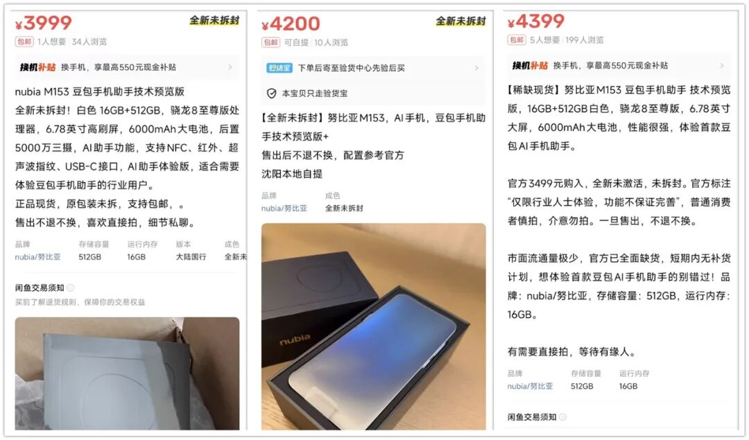 而努比亚M153现货加价更是夸张,目前全新未拆封已经加到3999元-4399元了,最高加价幅度为900元。甚至有不少“内部人士”开始倒卖F码,梦回十年前的小米抢购啊。
