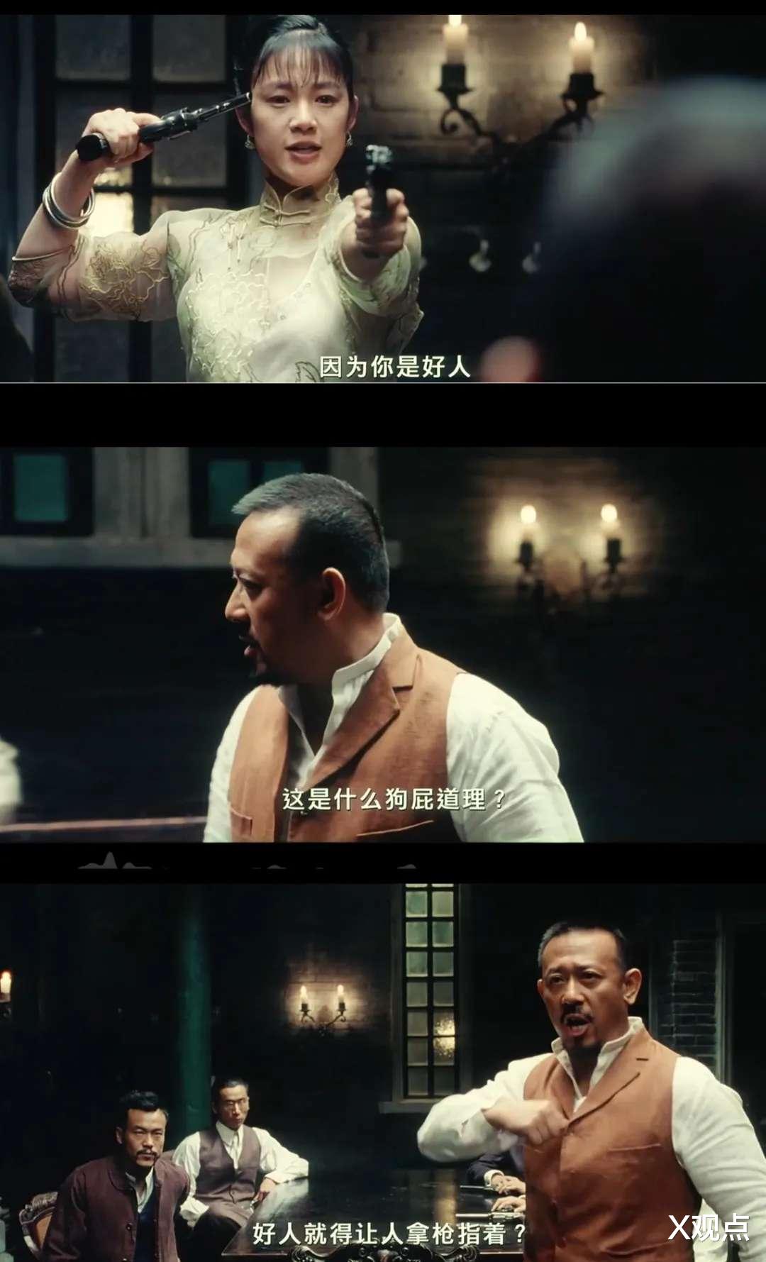 张麻子当场炸毛,吼出那句让观众拍案叫绝的台词: “什么?这是什么狗屁道理?好人就得让人拿枪指着?”