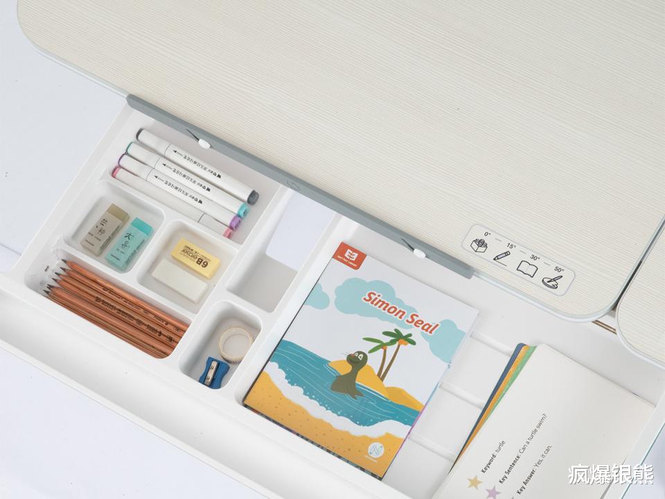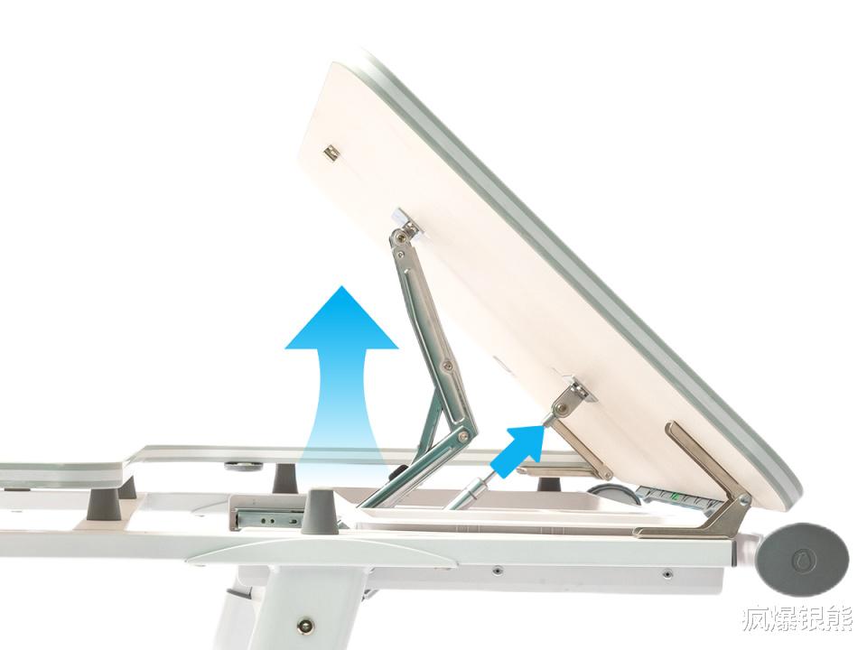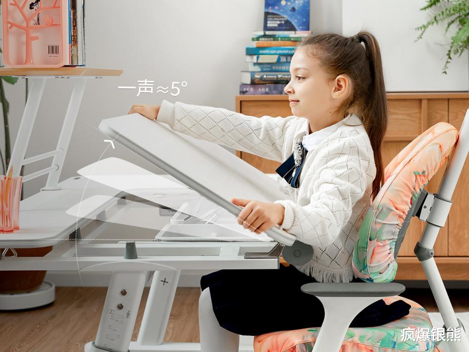 最贴心的是隐形书挡设计,调节桌面倾斜时,牢牢固定书本、试卷不滑落,且书挡高度适中,不会干涉手臂活动,孩子写字时胳膊能自然摆放,不会有束缚感。调节过程带有双缓冲设计,缓慢升降,避免夹手或桌面突然砸落。