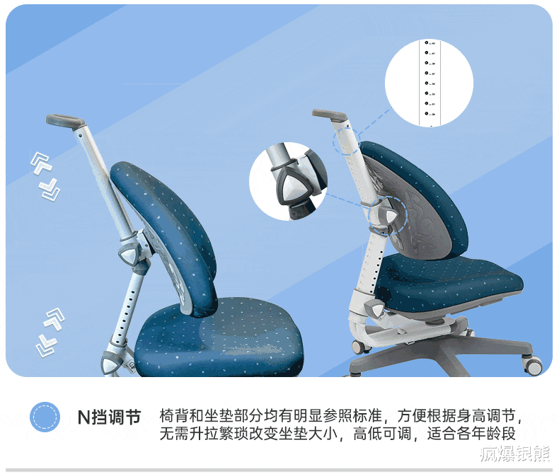 椅背采用倒L形脊椎曲线贴合框架,搭配±10°动态追背功能,能实时贴合孩子的后背曲线,无论孩子坐姿轻微调整还是身体晃动,椅背都能牢牢托住后背,形成自然支撑,避免久坐驼背、含胸。之前孩子写作业总需要我反复提醒“坐直”,换了这把椅子后,无需刻意提醒,孩子就能保持正确坐姿,久坐后也不会喊腰酸背痛,工学支撑效果十分明显。